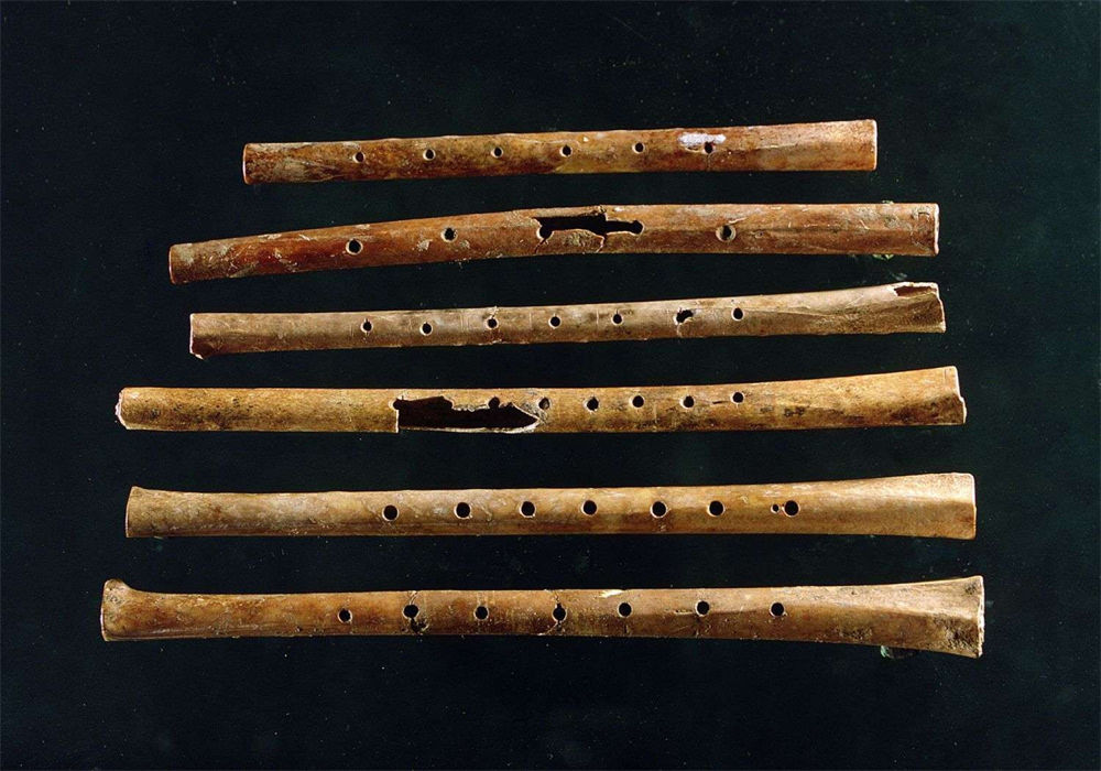 Çin’in Henan bölgesinde bulunan 7 delikli flütler M.Ö. 7000’e tarihleniyor. Jiahu flütleri, pentatonik dizileri gösterecek kadar akortlu yapılmış. Zeng Hou Yi’nin mezarından çıkarılan 65 çanlı orkestra ise M.Ö. 5. yüzyıla aittir. Konfüçyüs, müziği “erdemin sesi” olarak tanımlar.